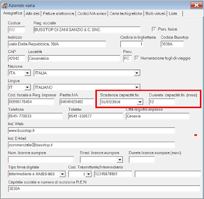 Per configurare Archivi – Contabilità – Parametri fatture: compilare campo nel rettangolo rosso