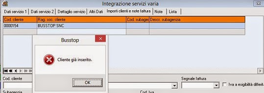 2) In caso di servizio da fatturare a più clienti, è stato messo un controllo che impedisce di aggiungere più di una volta il medesimo cliente nei clienti aggiuntivi.