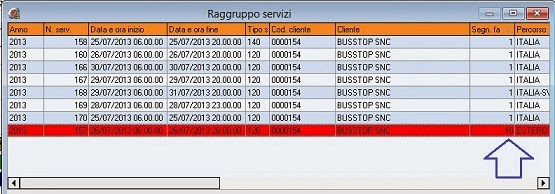 Si noti che è stato aggiunto il campo Segnale fattura (freccia blu) dove si evince che il servizio è fatturato.