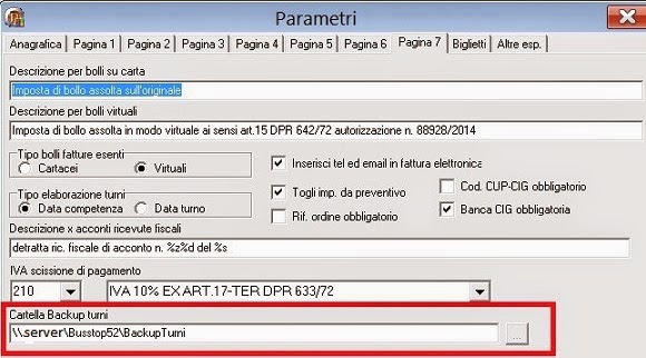 Per poter scattare automaticamente è necessario in Archivi – Tabelle prenotazione – Parametri – pagina 7, indicare una cartella in cui salvare il backup. (rettangolo rosso)