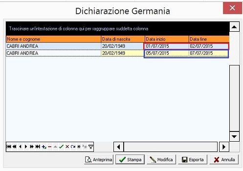 A tal proposito è stato modificato il funzionamento di BUSSTOP, che adesso legge le date di permanenza in Germania, inserite al momento della stampa della dichiarazione.